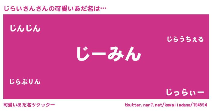| 意味不明あだ名 | 『ペロリンじらいさん』『自称じらいさん』 |