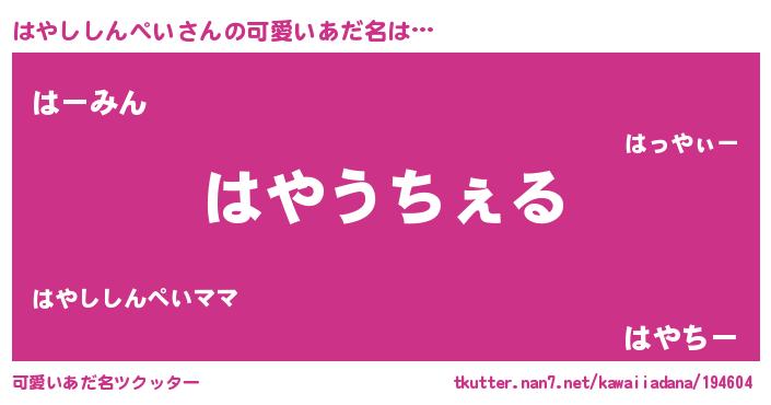 | 意味不明あだ名 | 『自称はやししんぺい』 |