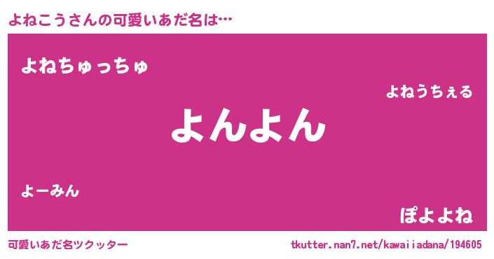 | 欧米人風あだ名 | 『マイケルよねこう』『ダニエルよねこう』 |