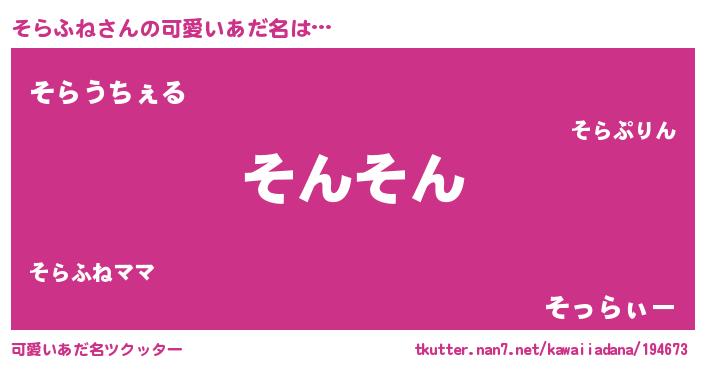 | 意味不明あだ名 | 『ペロリンそらふね』『自称そらふね』 |