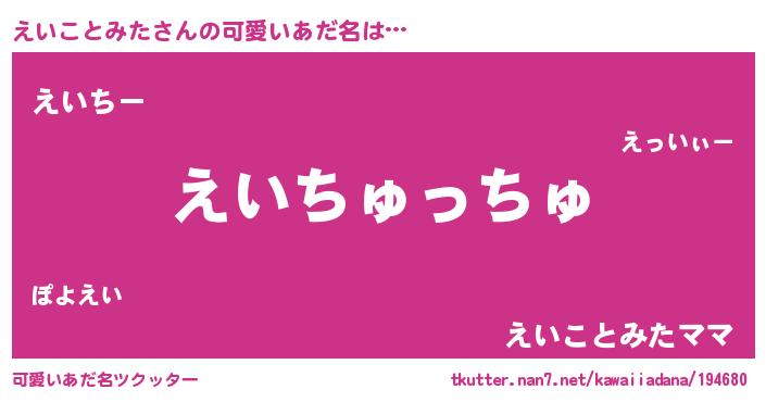 | 男性向けラノベタイトル風あだ名 | 『えいことみたに滅ぼされるだけの簡単なお仕事です』 |
