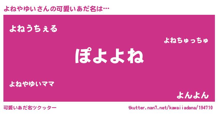 | 男性向けラノベタイトル風あだ名 | 『この素晴らしい世界によねやゆいを!』 |