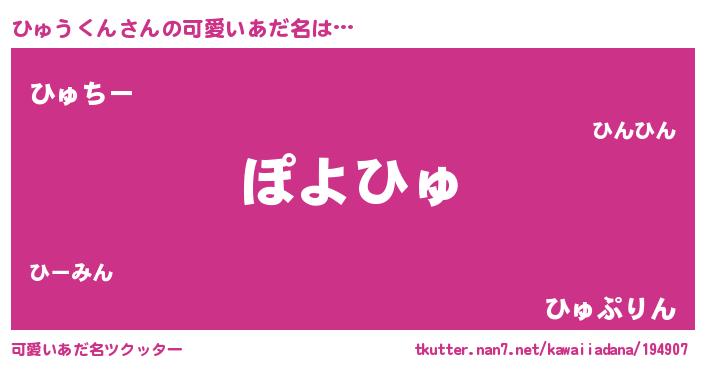 | 恥ずかしいあだ名 | 『ひゅっちょ』『プリティーひゅうくん』 |