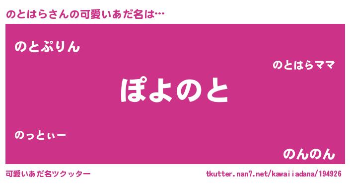 | 恥ずかしいあだ名 | 『プリティーのとはら』『のとちん』 |