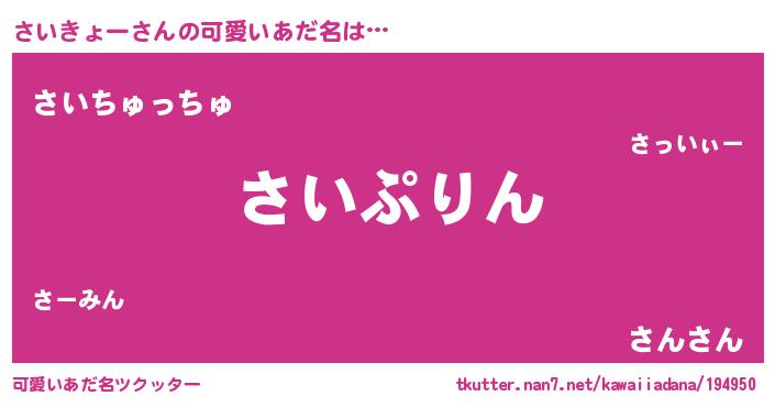 | ヒーロー風カッコイイあだ名 | 『正義の使者さいきょー』『黄金騎士サイ』 |