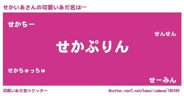| 恥ずかしいあだ名 | 『せかっちょ』『プリティーせかいあ』 |