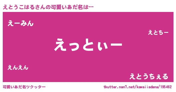 | 意味不明あだ名 | 『とにかく怪しいえとうこはる』 |