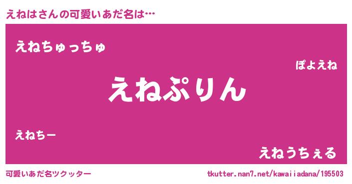 | 料理風あだ名 | 『えねはごはん』『えねはのトマト煮』 |