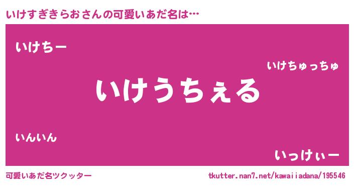 | 男性向けラノベタイトル風あだ名 | 『Re:いけすぎきらおから始める異世界生活』 |