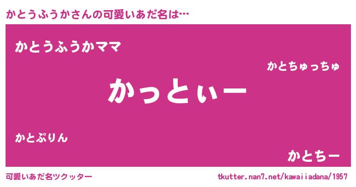 | 意味不明あだ名 | 『とにかく怪しいかとうふうか』 |
