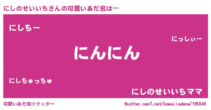 | ポケモン風あだ名 | 『ニシチュウ』『ニシノダネ』 |