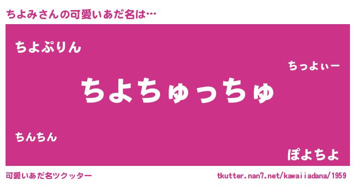 | 欧米人風あだ名 | 『ダニエルちよみ』『アンジェラ・ちよみ』 |