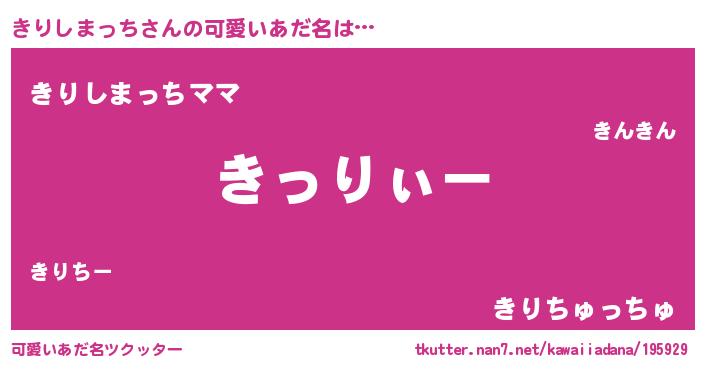 | ヘコむあだ名 | 『きりぷりん』『きりしまっち(笑)』 |