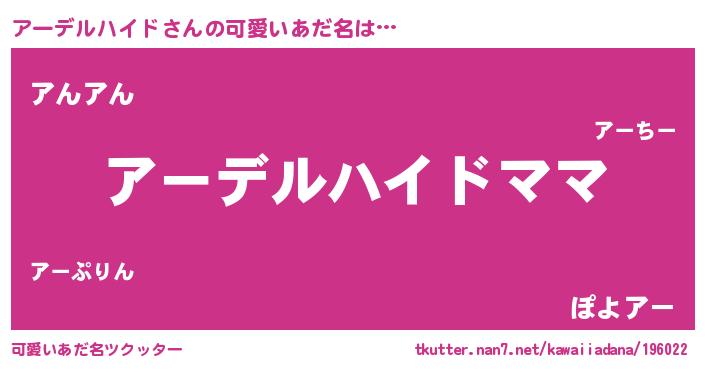 | 意味不明あだ名 | 『永久保存アーデルハイド』 |