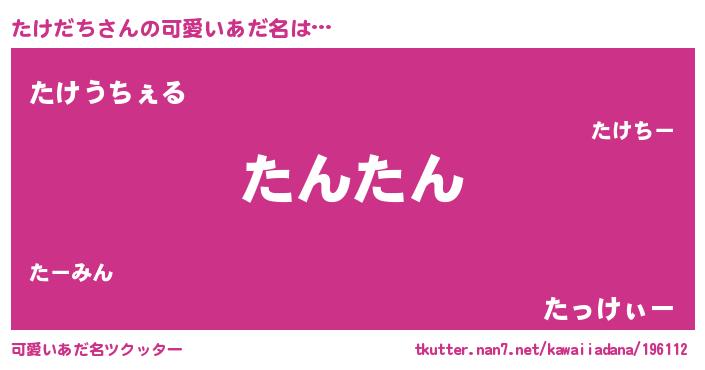 | ヘコむあだ名 | 『たけにー』『たけっ子』『なまこ酢』 |