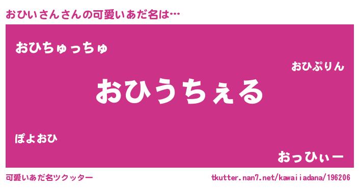 | 男性向けラノベタイトル風あだ名 | 『Re:おひいさんから始める異世界生活』 |