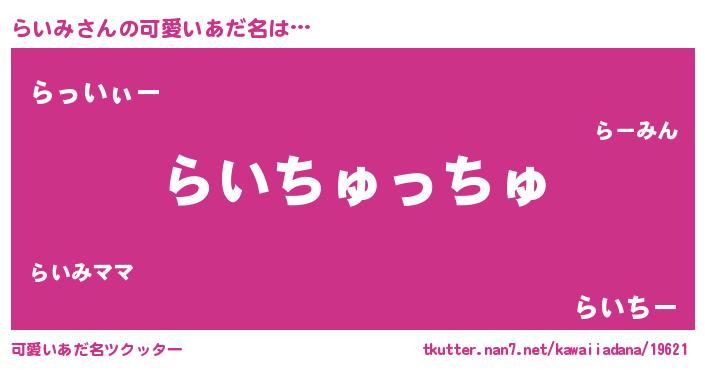 | 欧米人風あだ名 | 『ダニエルらいみ』『ウサインらいみ』 |