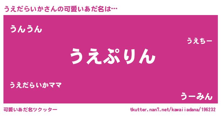 | 欧米人風あだ名 | 『トリンドルうえだらいか』 |