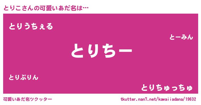 | ヘコむあだ名 | 『牛乳』『とりっふぃ~』『とりっ子』 |