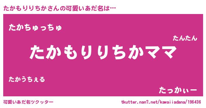 | 意味不明あだ名 | 『永久保存たかもりりちか』 |