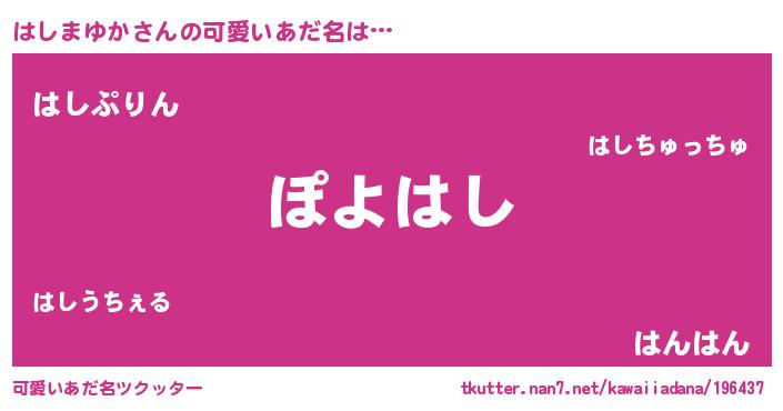 | 恥ずかしいあだ名 | 『プリティーはしまゆか』『ハシリンリン』 |