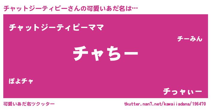 | 意味不明あだ名 | 『チャットジーティピーフォーエバー』 |