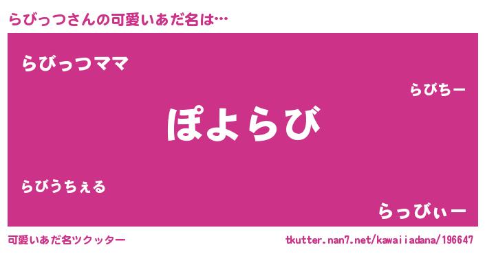 | 意味不明あだ名 | 『住所不定無職らびっつ(4歳)』 |