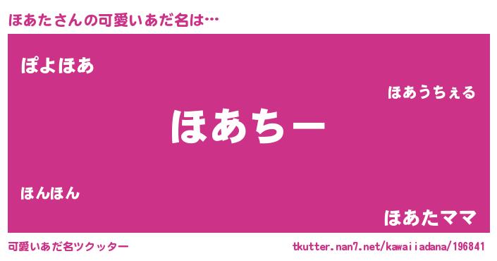| 女子向けラノベタイトル風あだ名 | 『ほあたの雑貨屋さん』『闇のほあた』 |