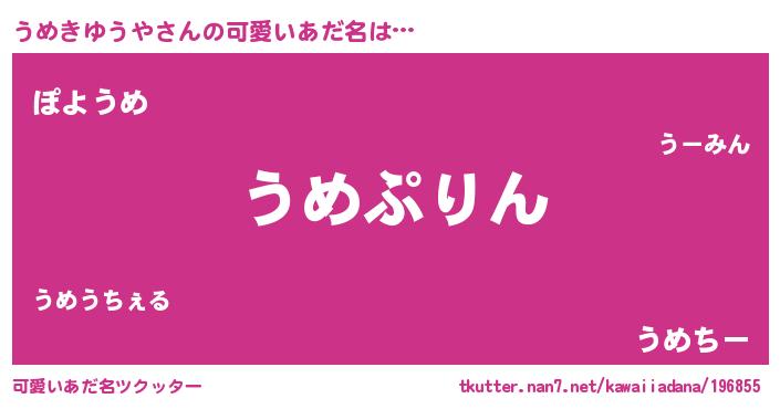 | 女子向けラノベタイトル風あだ名 | 『うめきゆうやの玉の輿計画!』 |