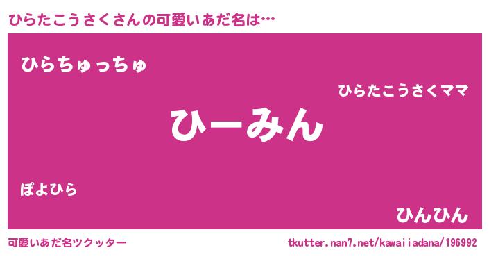 | ヘコむあだ名 | 『ひらにゅー』『ひらたこうさく(遠い目)』 |