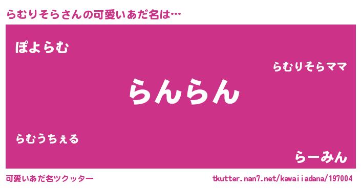 | 恥ずかしいあだ名 | 『プリティーらむりそら』『らむちん』 |