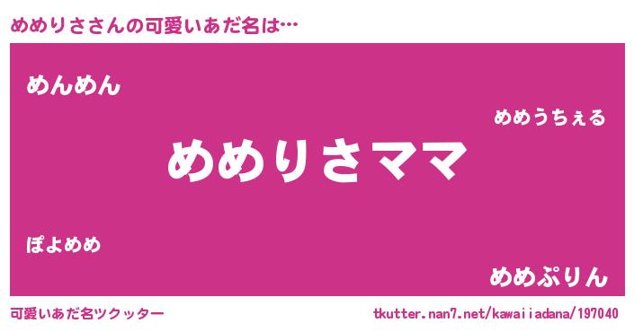 | 意味不明あだ名 | 『永久保存めめりさ』『ペロリンめめりさ』 |