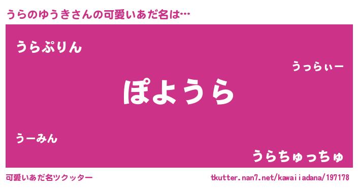 | ヘコむあだ名 | 『うら太郎』『うらのゆうき(笑)』 |