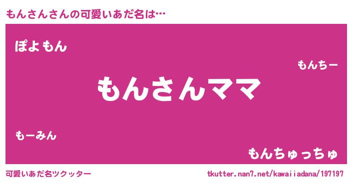 | 意味不明あだ名 | 『永久保存もんさん』『自称もんさん』 |