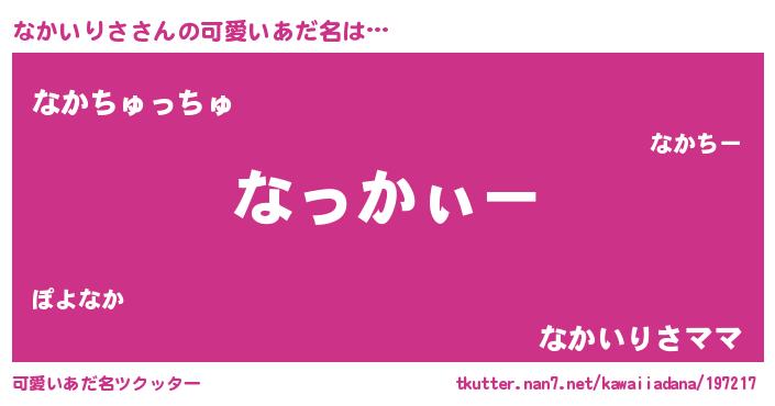 | ヘコむあだ名 | 『なかっ子』『なかいりさ(爆)』 |