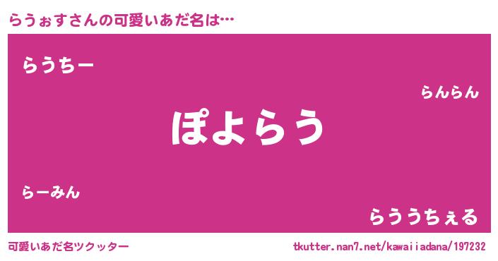 | ヘコむあだ名 | 『豆乳』『らうもー』『らうを』 |