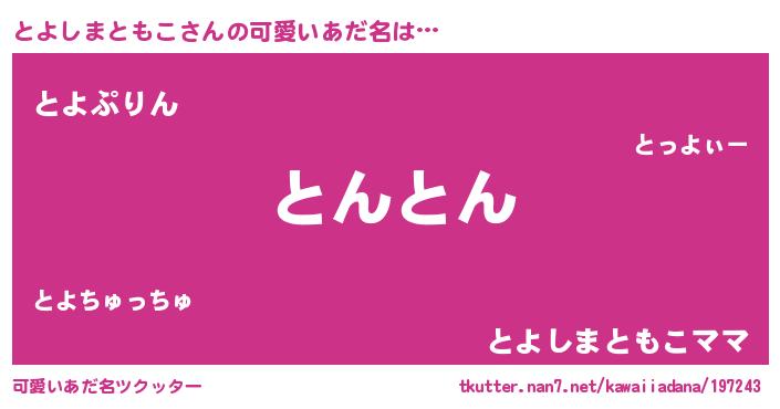 | ヘコむあだ名 | 『とよふぇ~』『とよしまともこ(笑)』 |