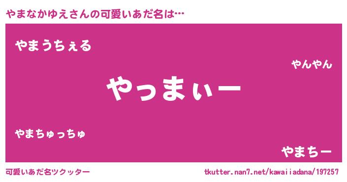 | 男性向けラノベタイトル風あだ名 | 『やまなかゆえの嫁は女の子じゃないと思った?』 |