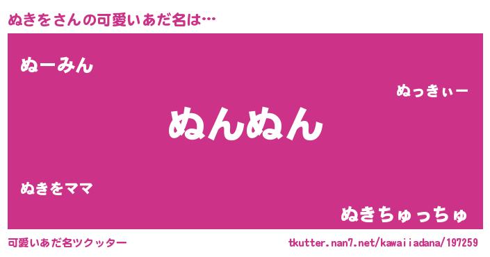 | ヒーロー風カッコイイあだ名 | 『スーパーヌキヲ』『正義の使者ぬきを』 |