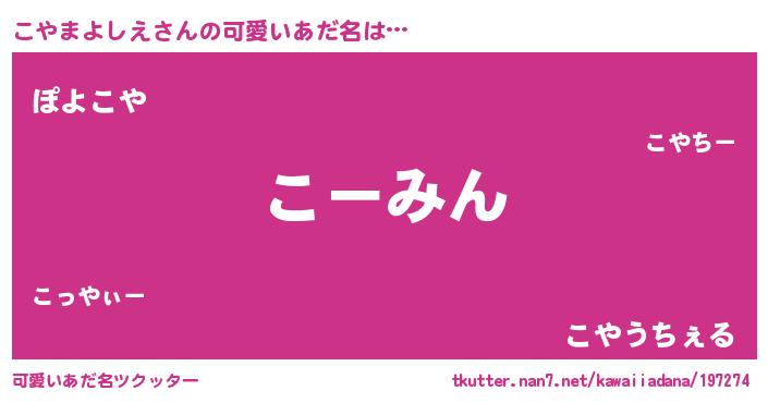 | 恥ずかしいあだ名 | 『コヤマヨシエデラックス』『こやっちょ』 |