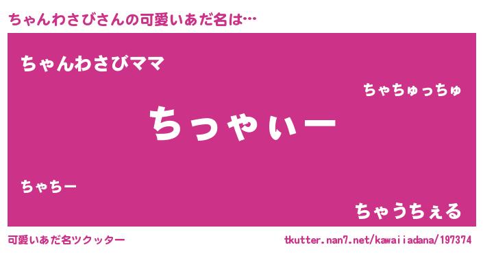| ヘコむあだ名 | 『ちゃぷりん』『ちゃんわさび(小並感)』 |