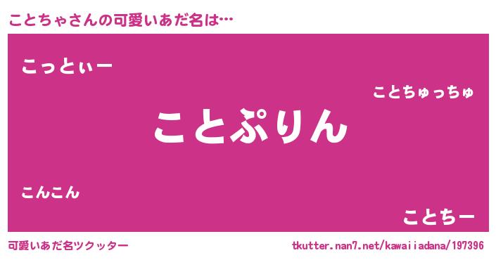 | 男性向けラノベタイトル風あだ名 | 『ことちゃ~年齢イコール彼女いない歴の魔法使い~』 |
