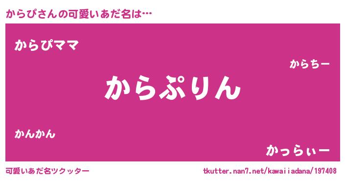| ヘコむあだ名 | 『からぴ(笑)』『からを』『なまこ酢』 |