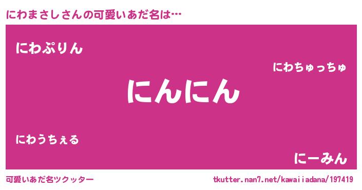 | ヘコむあだ名 | 『にわっふぃ~』『にわまさし(遠い目)』 |