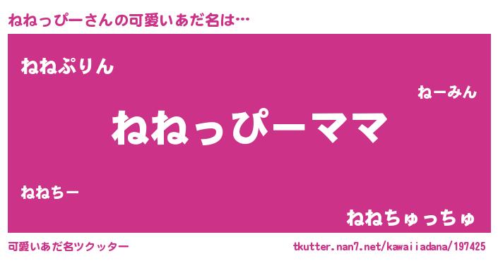 | ヒーロー風カッコイイあだ名 | 『ネオネネッピー』『愛の使者ねねっぴー』 |