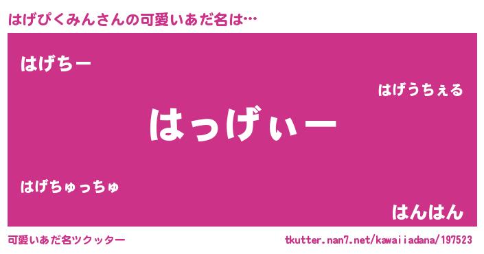 | 女子向けラノベタイトル風あだ名 | 『はげぴくみんは平凡を望む』 |