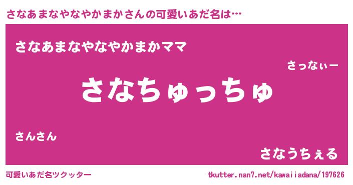| 女子向けラノベタイトル風あだ名 | 『さなあまなやなやかまか夫妻のなれそめ』 |