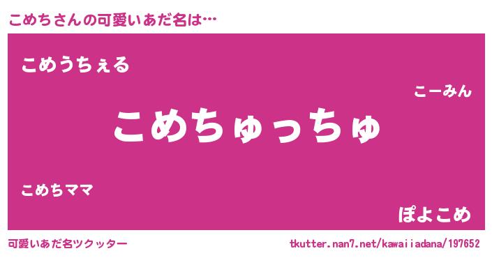 | 意味不明あだ名 | 『眠気覚ましガムこめち味』『自称こめち』 |