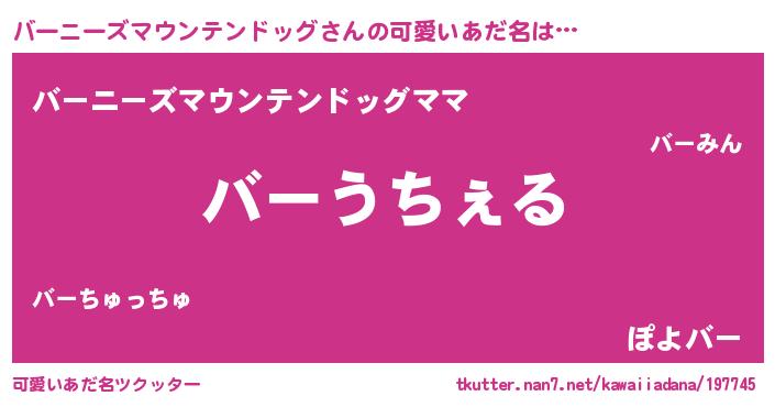 | ヒーロー風カッコイイあだ名 | 『ウルトラ戦士バーニーズマウンテンドッグ』 |