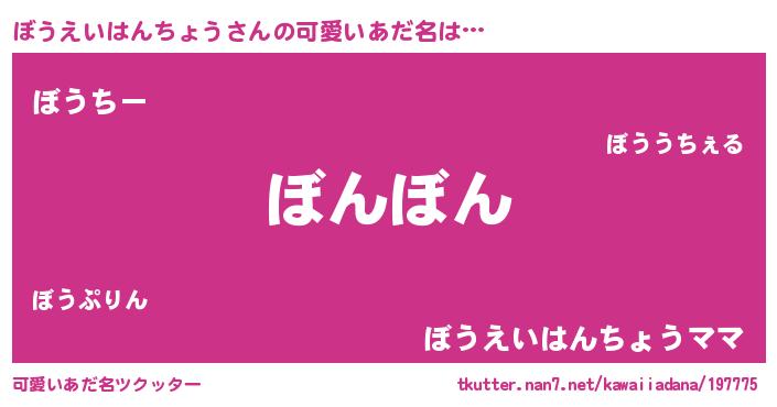 | 意味不明あだ名 | 『ペロリンぼうえいはんちょう』 |